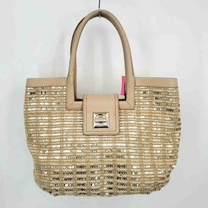 KATE SPADE Beige Silver Leather trim Pre Loved AS IS Sequin Trim Tote Purse
