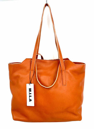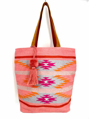 PANACHE Pink Orange Tapestry Leather Strap Tote Purse