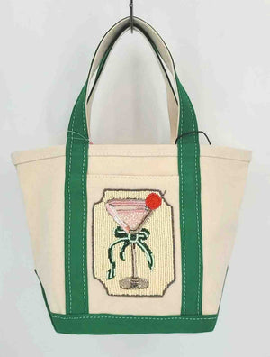ANTHROPOLOGIE Beige Green Beaded Has Tag Martini Small Tote Purse