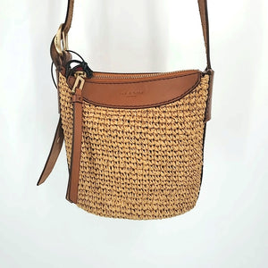 RAG & BONE Tan Brown Leather Strap Straw Pre Loved Woven Crossbody Purse