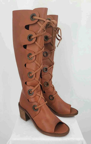 SIXTYSEVEN Brown Brass Peep Toe Tall Shoe Size 37 US: 7 Boots