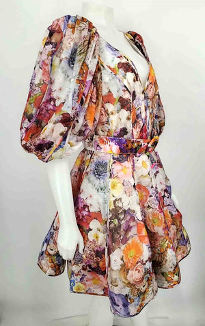 ZIMMERMANN* White Orange Multi Floral Print 3/4 Sleeve Size 12 (L) Dress