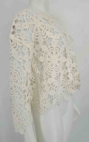 JOHNNY WAS Off White Wool & Cashmere Open Weave 3/4 Sleeve Size X-SMALL Top