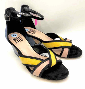 BIBI LOU Black & Blue Yellow Suede 2.5" Chunky Heel Shoe Size 36 US: 6 Shoes