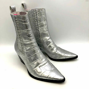 MATISSE Silver Leather Pointed Toe Reptile Pattern 2.5" Chunky Heel Boots