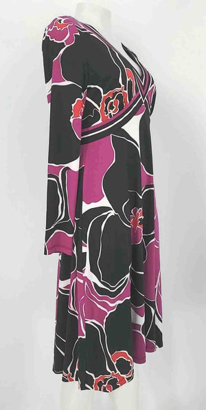 TRINA TURK Black Purple Multi Print Longsleeve Size 8 (M) Dress