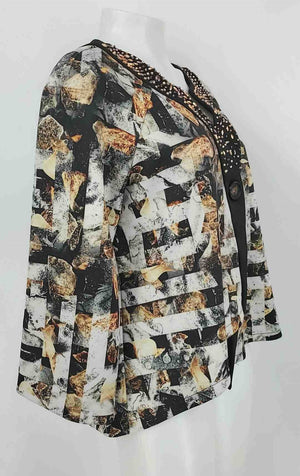 JOSEPH RIBKOFF Black Gold Embellishment Print Women Size 8 (M) Jacket