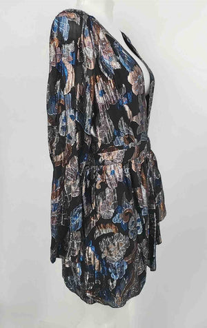 RAMY BROOK Black & Blue Silver Floral Wrap Size 8 (M) Dress