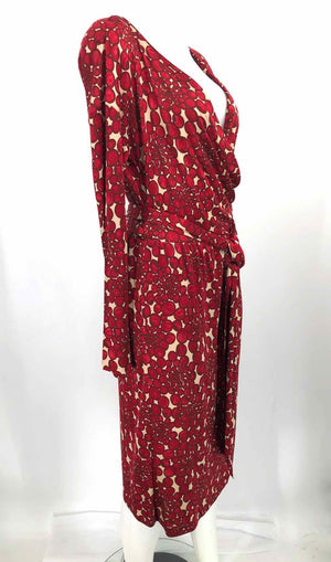 NICOLE FARHI Red Beige Silk Circles Wrap Size 8 (M) Dress