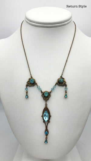 Blue Brass "Crystal" Vintage Art Nouveau 17" Vint-Neck