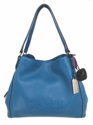 COACH Blue Silvertone Pebbled Leather Has Tag Shoulder Bag 13" 5" 10.5" Purse