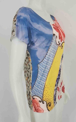 ANIMAPOP Blue Red Multi Made in Italy Print Short Sleeves Size SMALL (S) Top