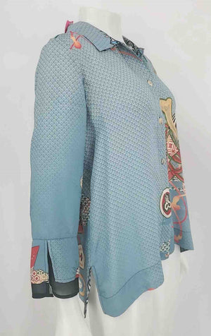 CITRON Blue Gray Red Multi Silk Print Button Up Size SMALL (S) Top