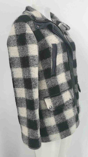 JOIE Black Cream Wool Blend Checkered Faux Fur Women Size X-SMALL Jacket