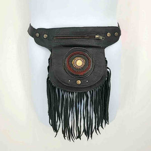 Black Multi-Color Leather Fringe Waist Bag Purse