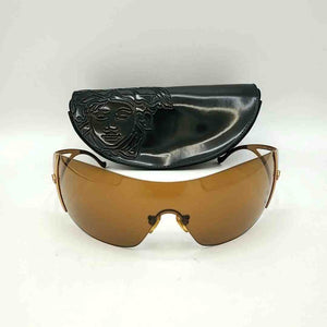 VERSACE Bronze Goldtone Pre Loved Shield Sunglasses w/case