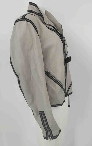 EMPORIO ARMANI Gray Black Leather Zip Front Women Size MEDIUM (M) Jacket