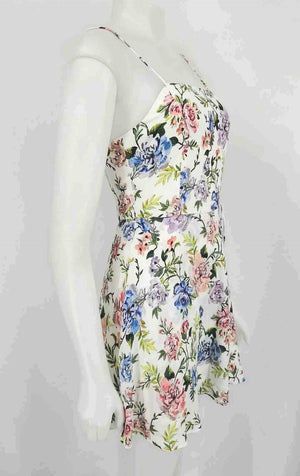 ALICE & OLIVIA White Green Multi Floral Print Spaghetti Strap Size 4 (S) Dress