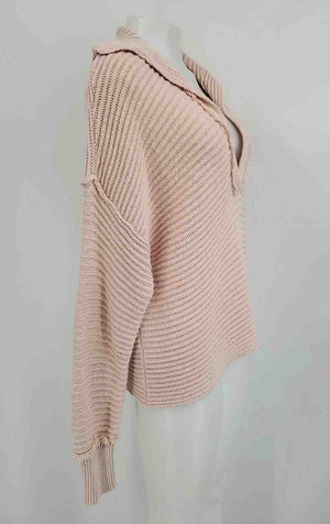 FREE PEOPLE Lt Pink Knit Collar Longsleeve Size SMALL (S) Sweater