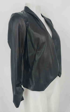 MELISSA NEPTON Black Synthetic Crop Drape Front Women Size X-SMALL Jacket