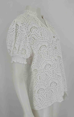 ROBERT GRAHAM White Cotton Eyelet Size X-LARGE Top
