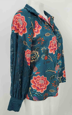FARM RIO Teal Multi-Color Floral Lace Trim Size XXS (XS) Top