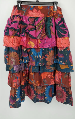 FARM RIO Pink Green Paisley Leaves Tiered Size MEDIUM (M) Skirt