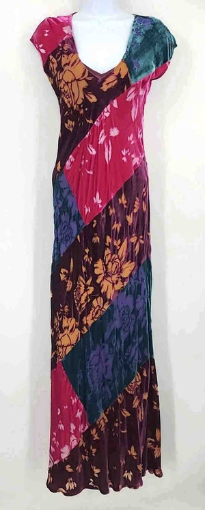 BHLDN Pink & Black Green Velour Floral Maxi Length Size X-SMALL Dress