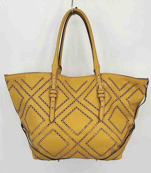 BURBERRY Mustard Yellow Leather Has Tag Perforated Tote Purse
