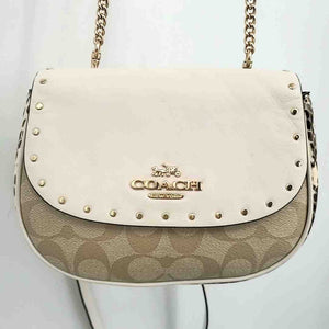 COACH Beige Tan Gold Leather Has Tag Monogram Belt Bag Purse