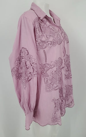 ANTHROPOLOGIE Lavender Cotton Eyelet Size LARGE (L) Top