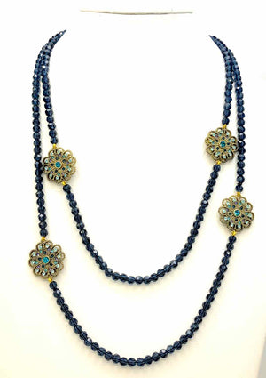 HEIDI DAUS Navy Turquoise Color Brass Crystal Pre Loved Flowers beaded Necklace