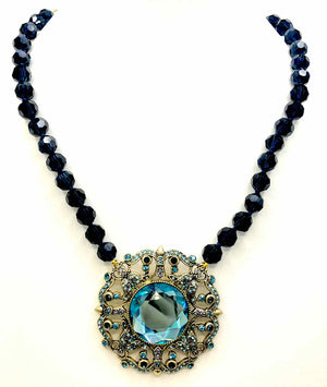 HEIDI DAUS Navy Turquoise Brass Crystal Pre Loved Medallion 18" Necklace