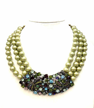 HEIDI DAUS Blue & Green Purple Multi Crystal Brass Pre Loved Bib Necklace