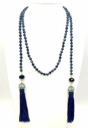 HEIDI DAUS Navy Turquoise Brass Crystal Pre Loved Beaded Lariat 48" Necklace