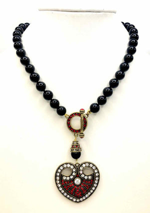 HEIDI DAUS Black Red Brass Crystal Pre Loved Heart Necklace