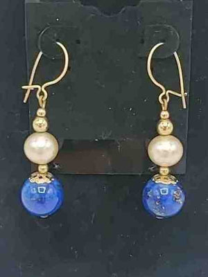 Blue Silver Pearl Lapis Pre Loved ss Earrings