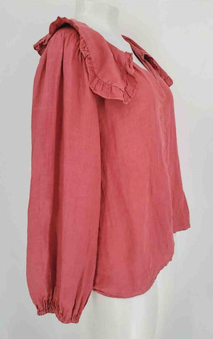 VELVET by GRAHAM & SPENCER Pink Linen Longsleeve Size LARGE (L) Top