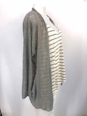 MARGARET O'LEARY Gray White Linen Striped Top & Wrap Size MEDIUM (M) 2PC Set