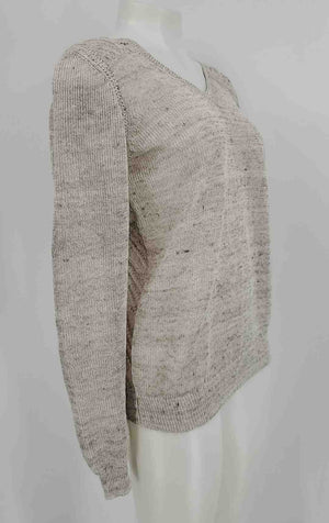 CAMILLE REAU Gray Linen Woven Longsleeve Size MEDIUM (M) Sweater
