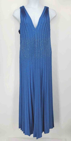 ST. JOHN Blue Knit Rhinestone Maxi Length Women Size 12 (L) Jacket
