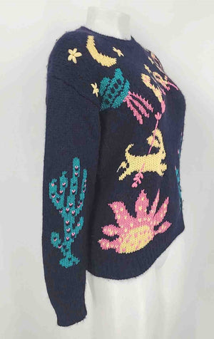 MOTHER Navy Blue Multi-Color Alpaca Blend Made in Peru Print Pullover Sweater