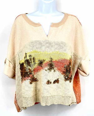 PILCRO Beige Multi-Color Woven Pattern Short Sleeves Size Petite (S) Top