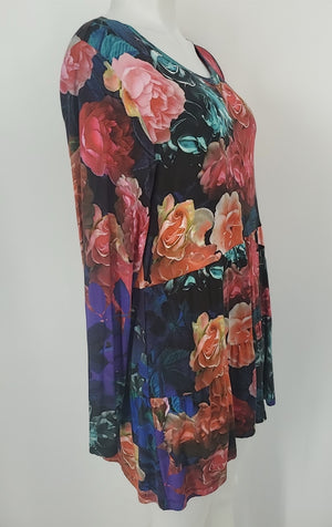 JOHNNY WAS Multi-Color Red Roses Longsleeve Size LARGE (L) Top