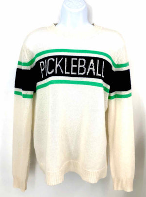 ALASHAN Ivory Navy Multi-Color Cashmere Word Print Longsleeve Sweater