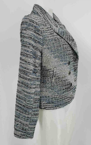 CABI Gray Navy Multi-Color Textured Double Breasted Women Size SMALL (S) Jacket