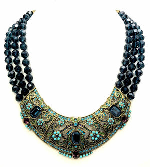 HEIDI DAUS Blue & Green Navy Multi-Color Brass Crystal Pre Loved beaded Necklace