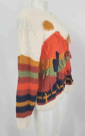 MOTHER Off White Orange Multi Alpaca Blend Made in Peru Print Pullover Sweater