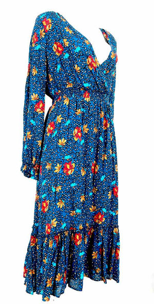 SEZANE Blue Orange Multi Floral Print Longsleeve Size 42 (SM) Dress