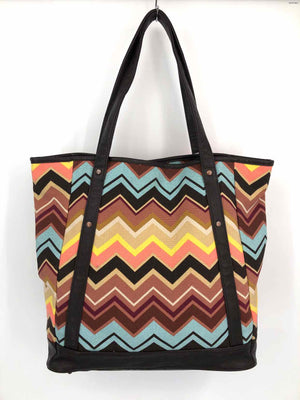 MISSONI Tan Pink Multi Blue Multi Canvas Has Tag Chevron Tote 15" 5" 15" Purse